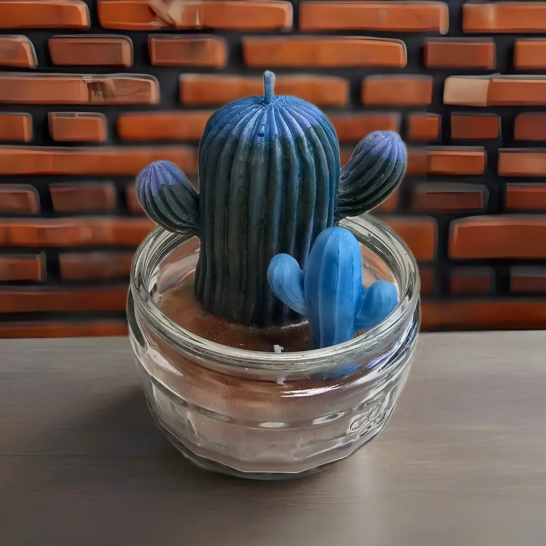 hecha con cera vegetal , está diseñada como un pequeño jardin en un frasco de vidrio, con cactus de distintos tamaños en tonos profundos que evocan tranquilidad y estilo. ideal para regalar aromatizar tu espacio o simplemente disfruta de su originalidad decorativa. Una fusión entre naturaleza, arte y luz.